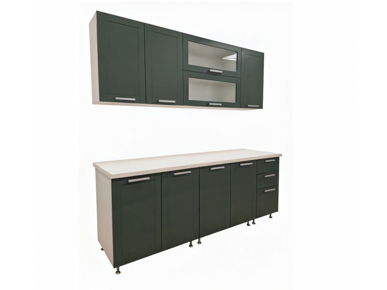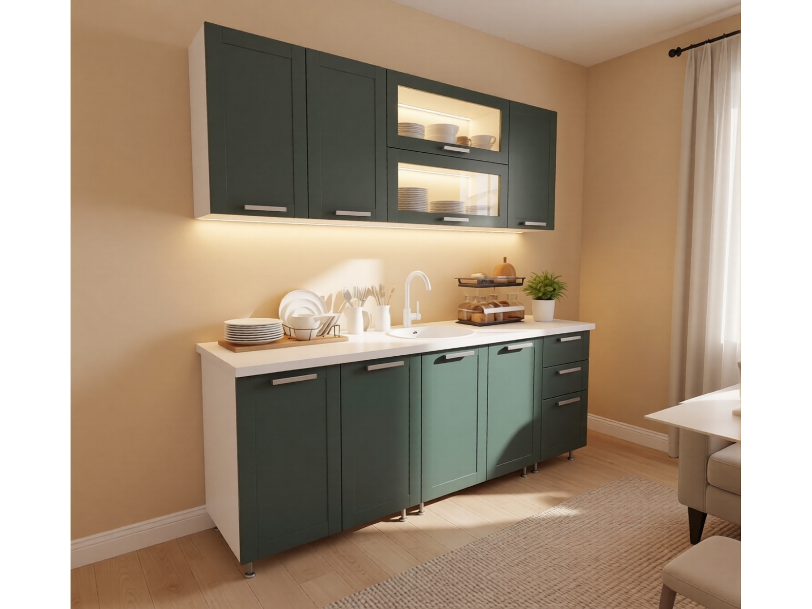 Кухня Валенсия NEW 2,0 м, ЛДСП Белый, МДФ Моно грин (МС груп), УД-К, 00050617