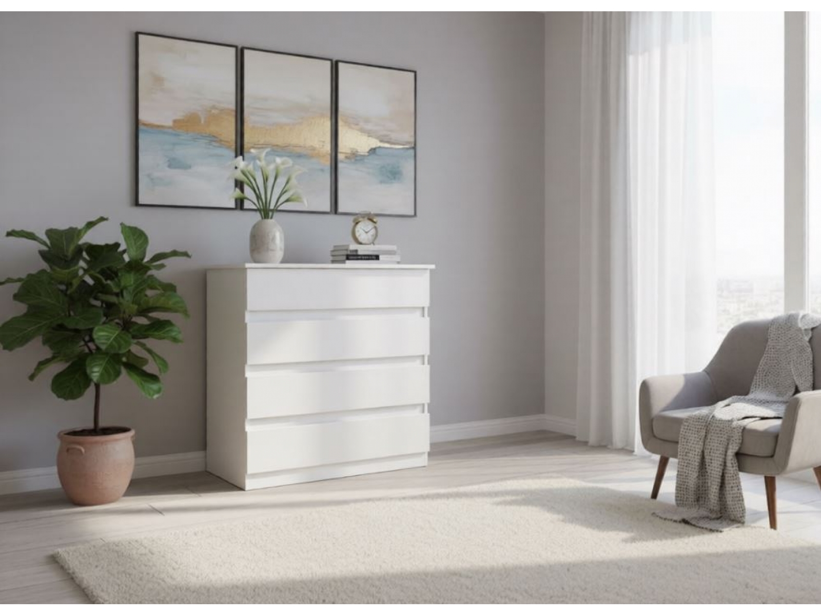Комод Стандарт 7, ЛДСП Белый с тиснением , ЛДСП Белый с тиснением , УД-К, 00050716