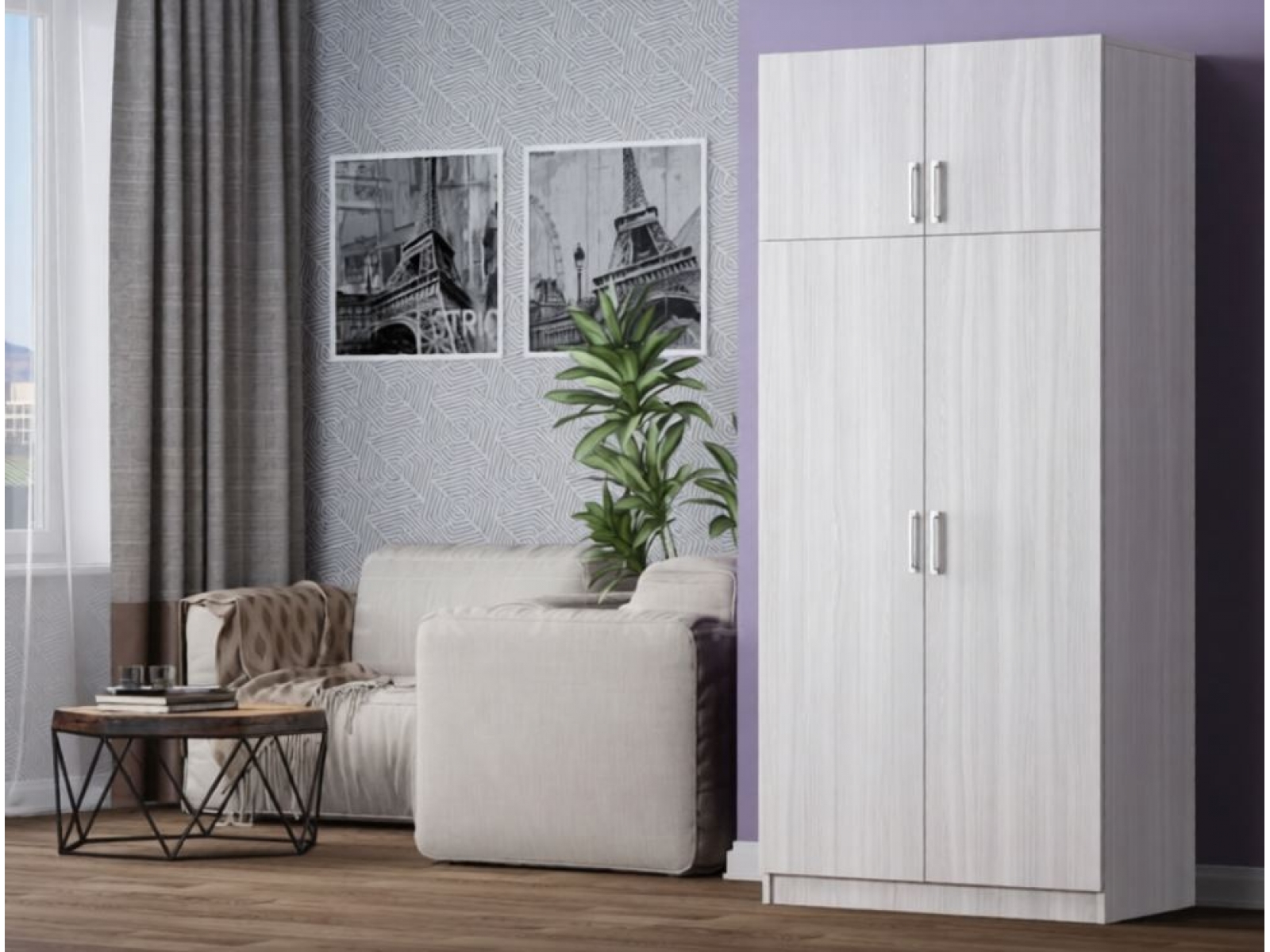 Шкаф 2-створчатый с антресолью, ЛДСП Ясень белый, ЛДСП Ясень белый, УД-К, 00043401