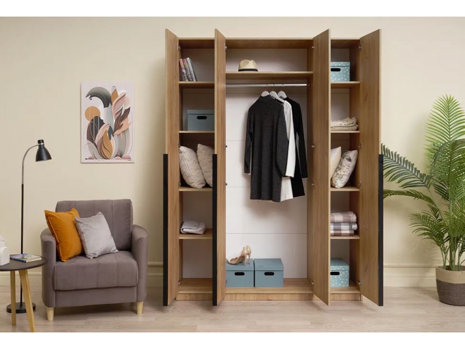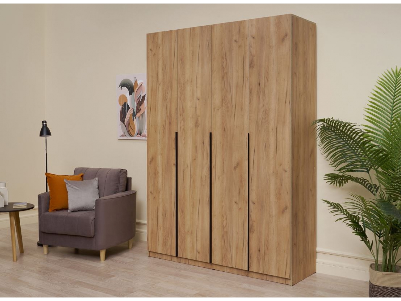 Лагос Шкаф 4-створчатый 2,0 м, ЛДСП Дуб Вотан, ЛДСП Дуб Вотан, УД-К, 00049096