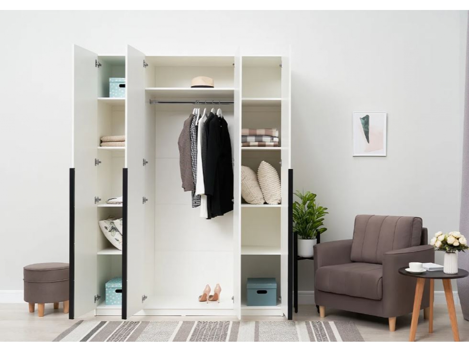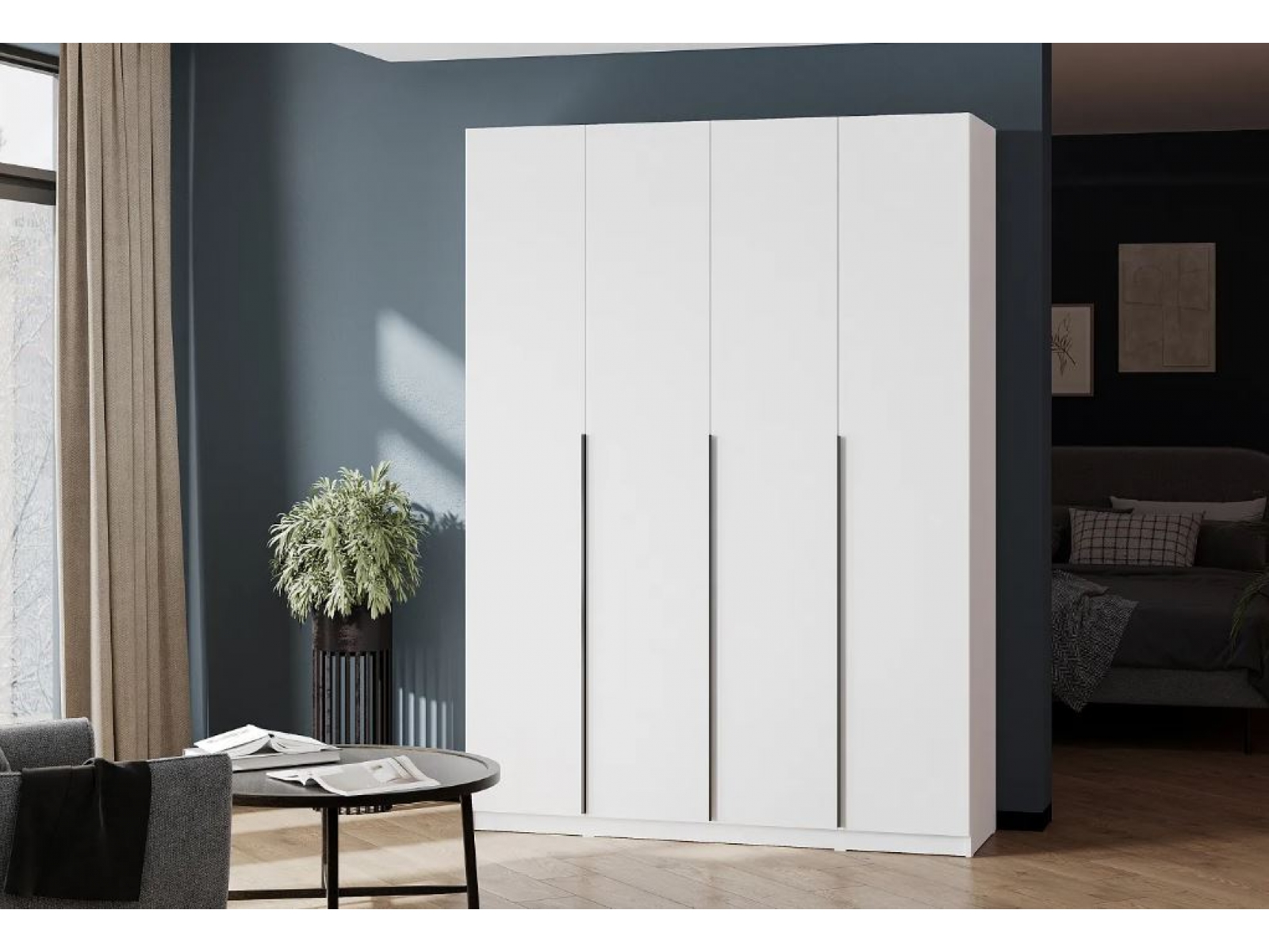 Шкаф 4-х створчатый "Лагос 1600" в белом цвете вместительный благодаря множеству полок и штанге, что позволит вам хранить сразу много вещей, освободив при этом пространство в комнате.Преимущества модели: