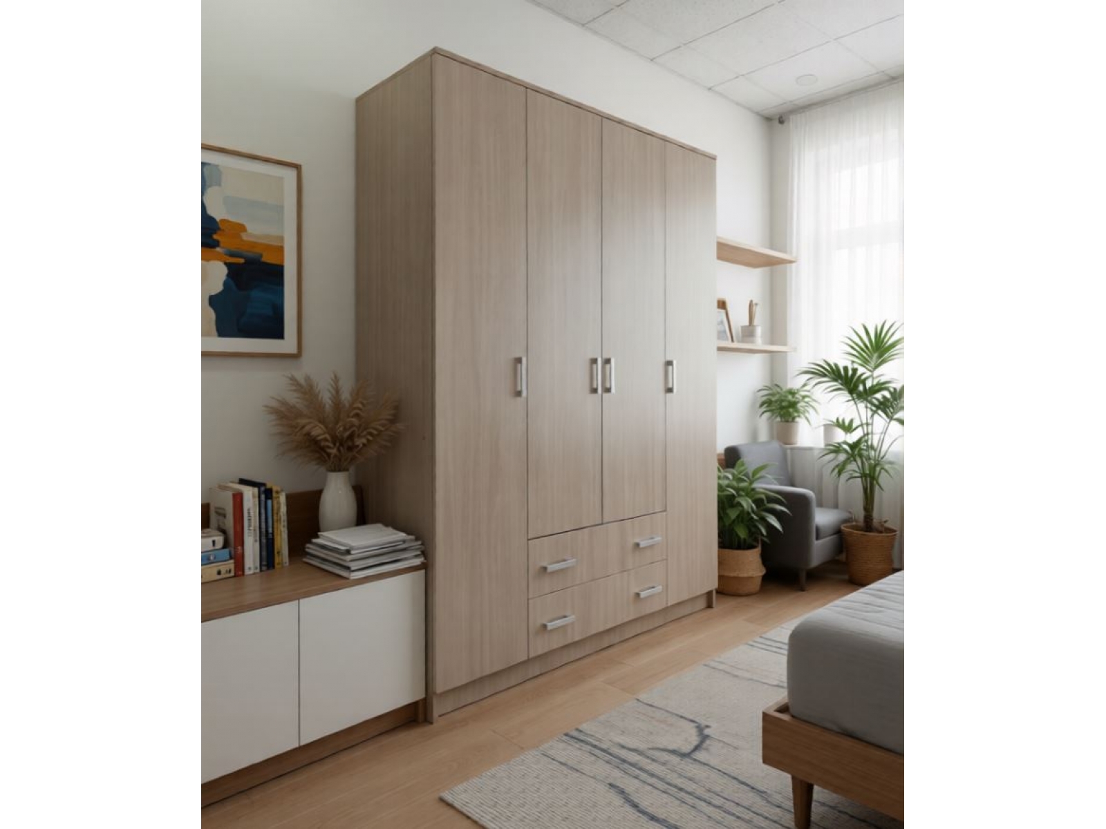 Спальный гарнитур Леон Шкаф 4-створчатый , ЛДСП Ясень шимо светлый, ЛДСП Ясень шимо светлый, УД-К, 00045670