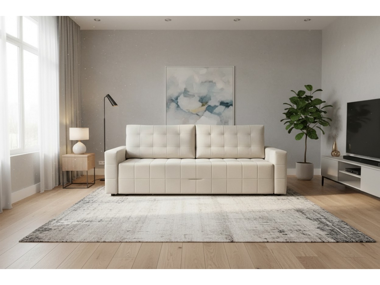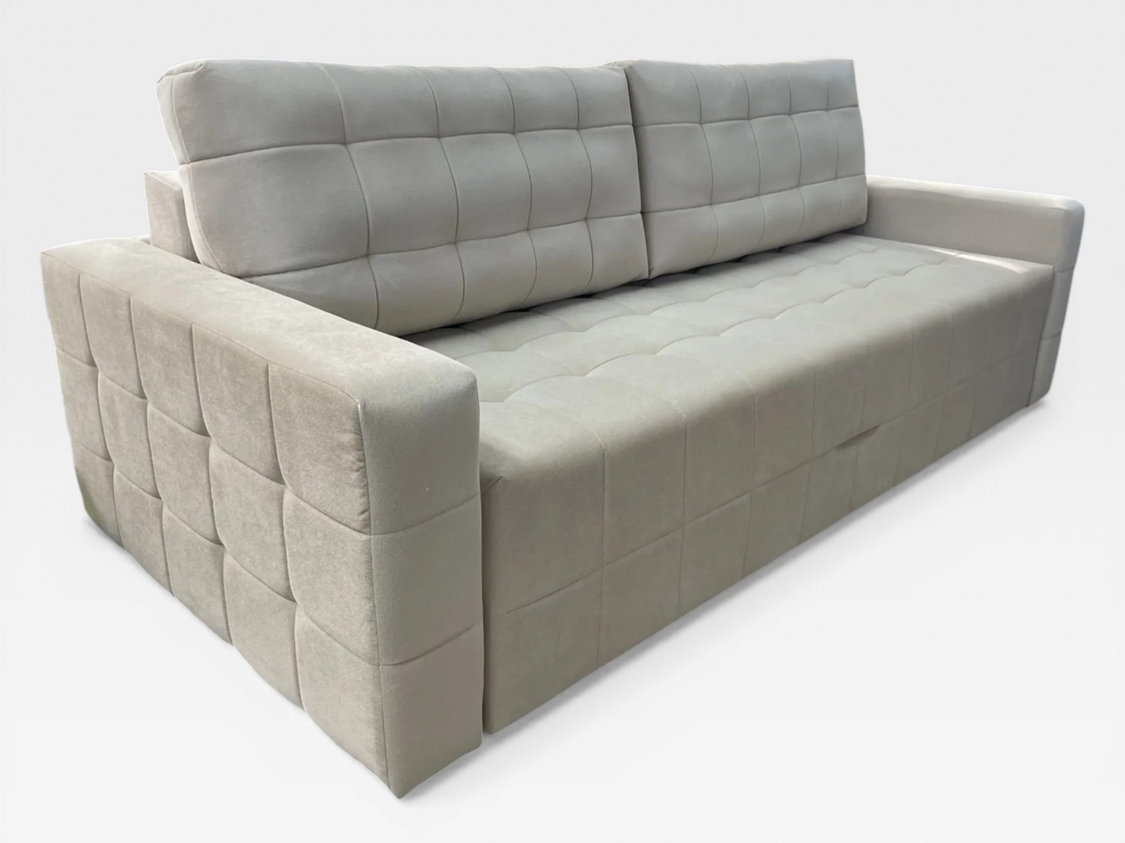 Диван «Аргус» — современная модель с монолитным силуэтом и широкими подлокотниками. Графичная квадратная стёжка подчёркивает строгие линии и помогает дивану дольше сохранять опрятный вид.Преимущества:
