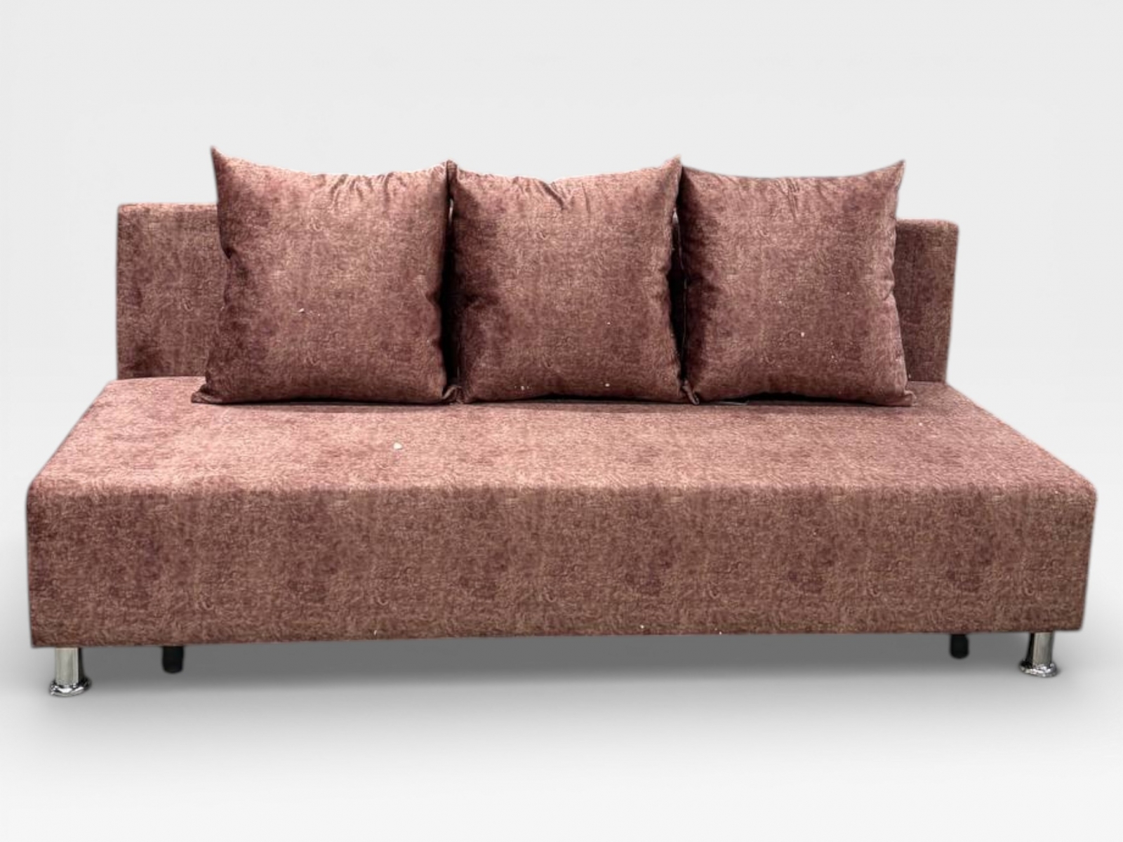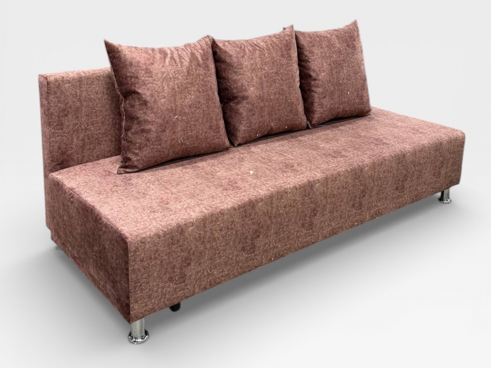Диван «Барселона» — лаконичный и современный диван‑кровать для тех, кто ценит комфорт и чистые линии. Компактная модель без подлокотников визуально облегчает пространство и дает больше посадочных мест. Фактурная бархатистая обивка с легким переливом и хромированные опоры добавляют интерьеру элегантности. В комплекте — объемные подушки для поддержки спины.Преимущества: