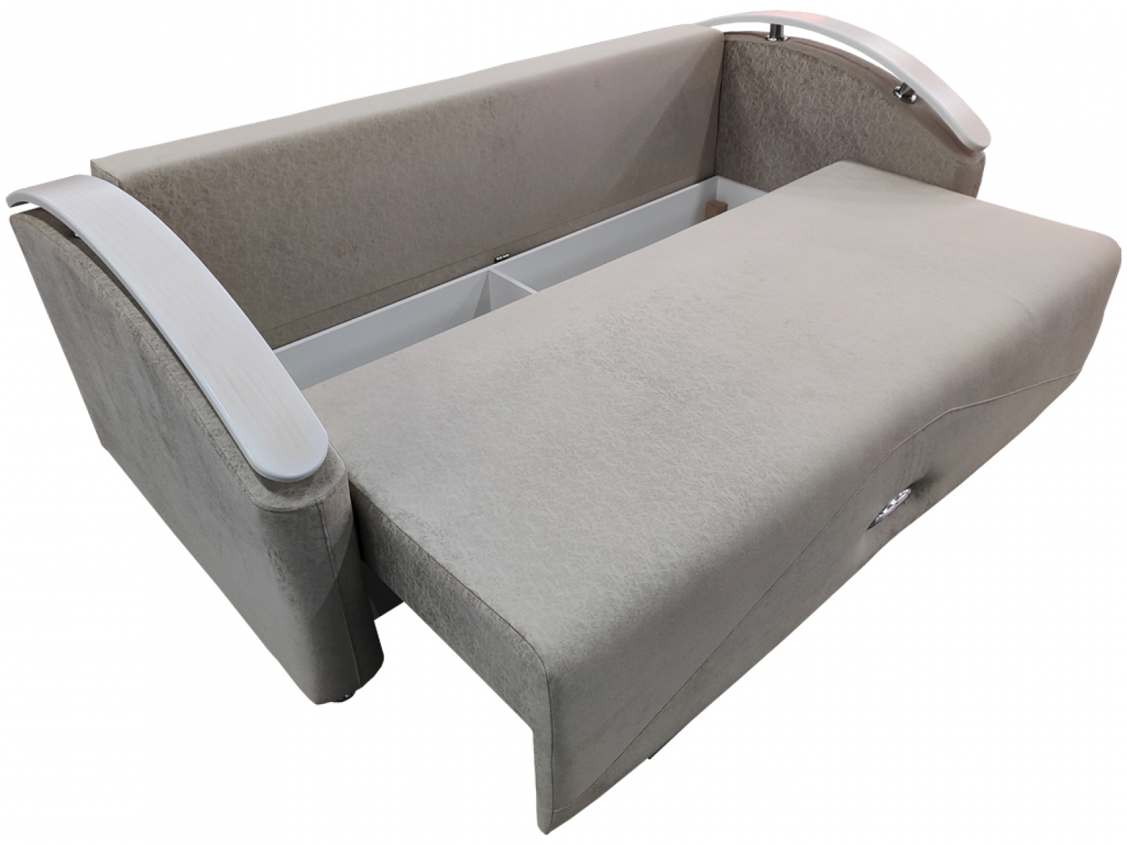 1. Модель оснащена бельевым ящиком и задней спинкой, защищающей от соприкосновений со стеной во время сна.