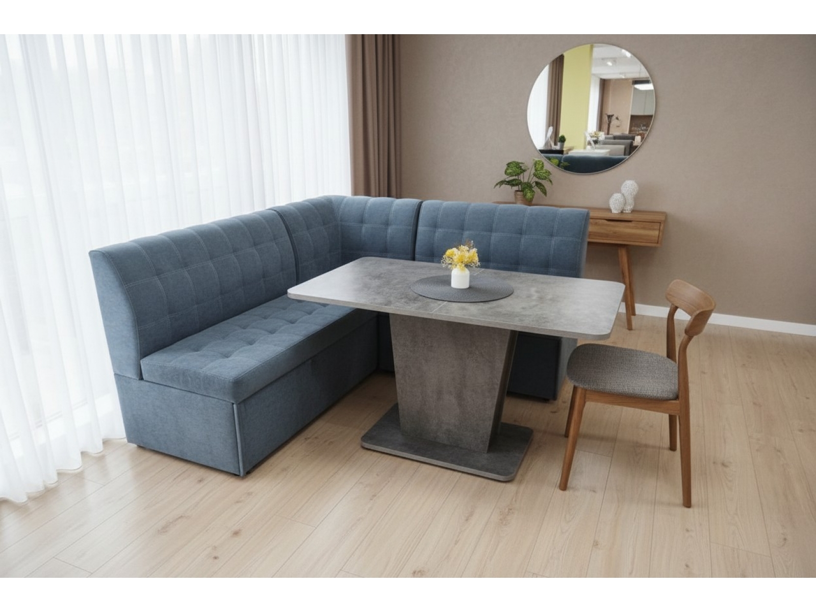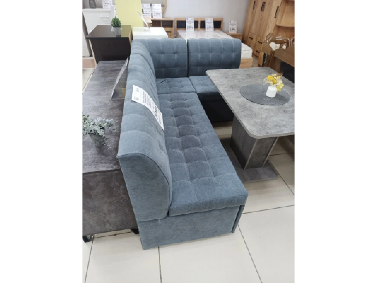 Кухонный уголок-диван «Премиум»Стильный L-образный диван для кухни и столовой с лаконичным силуэтом и аккуратной квадратной стёжкой. Высокая мягкая спинка и скруглённые края обеспечивают комфорт и безопасность в проходной зоне.