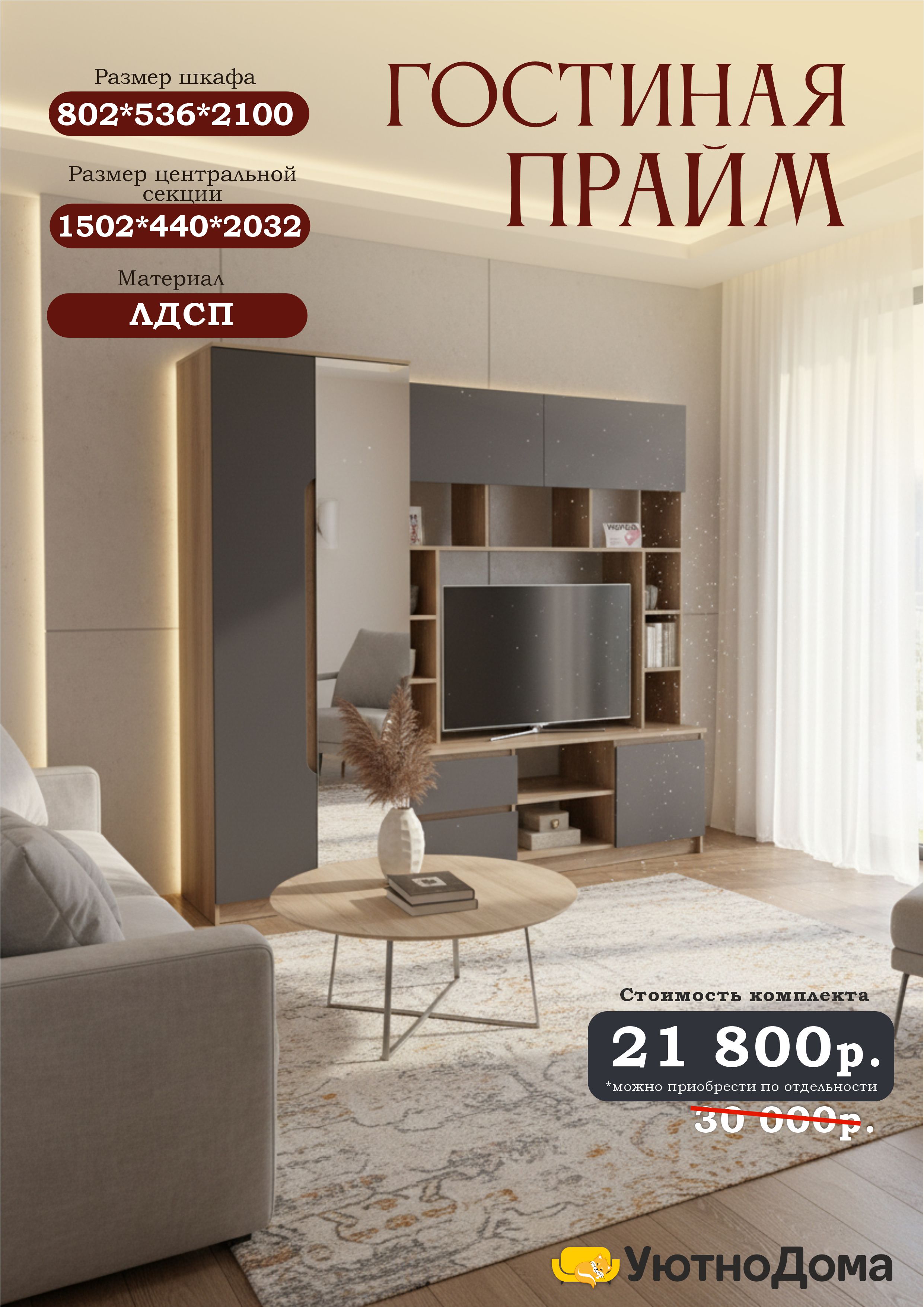 Шкаф купе всего за 24 900 рублей! Гостиная "Трамп" по выгодной Гостиная "Прайм" по выгодной