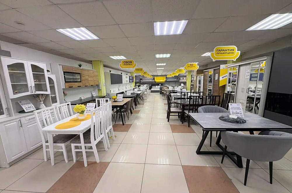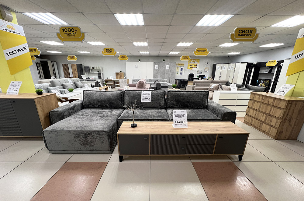 Магазин специализируется на продаже корпусной и мягкой мебели бюджетного сегмента самых популярных фабрик. Также имеется собственное производство для изготовления любой мебели по индивидуальным эскизам и нестандартным размерам. В магазине имеется много выставочных образцов. На заказ любые нестандартные решения в любых цветах и материалах. Выезд специалиста для снятия замеров, короткие сроки изготовления и сборка мебели у Вас дома.